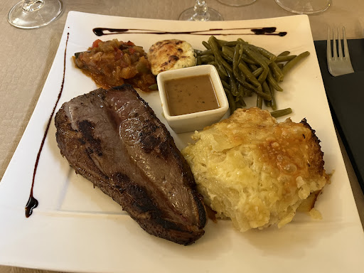 Super restau. Traditionnel. Très jolie carte simple efficace avec de belles pièces de viande. Tout était très bon, la viande excellente, les accompagnements supers bons variés et très bien assaisonnés. Les desserts également. Mention spéciale pour le patron Éric qui est vraiment top, agréable, sympathique, plein d’humour, sans chichi, avec un super contact, c’est agréable de tomber sur des gens comme ça. On cherchait désespérément un restau ouvert, on ne cherchait pas un gastro mais on ne voulait pas non plus la petite brasserie toute simple. Franchement j’ai été agréablement surprise. Très bon,du bon choix de bonnes viandes et bien accompagnées. Du fait maison. Pourquoi chercher plus loin ? On y retournera avec plaisir si l’occasion...