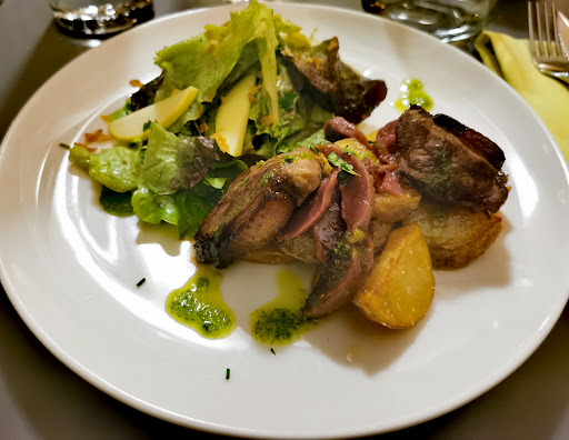 Côté cuisine la cuisine de canard semble très bien maîtrisée avec des portions généreuses. La cuisson des poissons n'est cependant pas du tout maîtrisée, ceux-ci étant bien trop cuits, heureusement la sauce citron permet de redonner vie au plat. Les garnitures sont variées et assaisonnées c'est un bon point. Le moelleux au chocolat est léger et parfumé, en revanche la tarte aux pommes pas cuite, dommage le dessert aurait été parfait avec beaucoup plus de cuisson et un petit accompagnement type glace et crème fouettée.