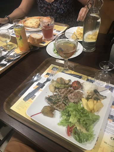 Très déçu par cette prestation. Bien reçu par le gérant aimable avec le sourrire, ce qui n est pas le cas de la gérante froide et parlant sur un ton un peu sec. Le principe est cool mais malheureusement la qualité n est pas la. Petits choix pour un buffet, aussi bien en entrer qu en dessert, qui pour la plus part est de l industriel. Nous avons prix des plats du jour à goût de cantine d école ou de plat d hôpitaux, pas d assaisonnement quantité médiocre, choix de la viande mauvaise ( poulet farineux nourris aux hormones sûrement) le cheeseburger pas de demande de cuisson de viande dessert surgelé sans texture ni gout. Prix très cher 61 euros pour trois alors que nous repartons sans avoir manger grand chose, fade, dans un décor qui ne vend pas du rêve non plus, poutre en bois pleine de poussière mobilité pas confortable. Pour résumé...