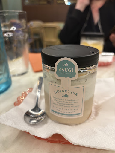 Nous nous sommes laissĂ©s tenter par les glaces de chez Raugi en dessert. Elles Ă©taient trĂšs bonnes, le serveur mâa gentiment passĂ© la verrine sous lâeau pour faire fondre le coulis au fond du pot. Tout le service Ă©tait dâailleurs trĂšs bien.