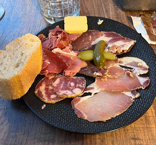 Starter: charcuterie corse Main: sautè de veau corse pâte Desert: lan á...