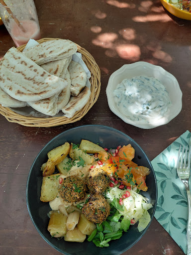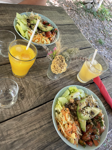 Read moreEin kleiner Juwel für alle Veganer, die sonst auf Korsika ziemlich vergeblich nach etwas leckerem abseits von Pizza ohne Käse oder Pommes suchen... Von Mo - Fr gibt es täglich ein feines und gut abgestimmtes Gericht - wir hatten einmal den Mexiko Bowl und an einem anderen Tag den Falafel Bowl. Außerdem gibt es neben selbstgemachten Getränken hervorragende Kuchen, Muffins und Tartes (auch zum Mitnehmen sehr praktisch). Auch die beiden Betreiber sind sehr sympathisch und das Ambiente im duftenden Garten von Essences Naturelles Corses sehr entspannt/entspannend. Achtung: Barzahlung, unbedingt vorher genug abheben, damit man keine Versuchung...