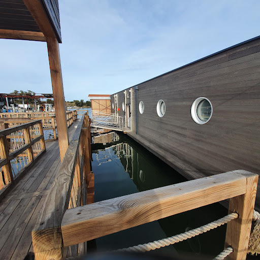 Read moreBling Bling mais Bof Bof ! Voici un établissement où nous avions très envie d'aller bien qu'il nous ait été déconseillé déjà une fois... mais là l'occasion était trop belle, nous avons donc cédé, car il faut le dire le site est fort agréable en ce mois de décembre ensoleillé... L'accueil est chaleureux et la déco tout en bois et cordages nous transporte aussitôt. Nous bénéficions d'une table en bord du chalet flottant donc vue magnifique sur l'étang, que demander de mieux... Les prix sur la carte font un peu sursauter quand même ... et quand on voit Menu enfant "steak haché frite" généralement on sait que ce n'ai pas bon signe... Le serveur est charmant, nous prenons une bouteille de blanc (clos Poggiale) et 6 huîtres pour gouter car nous adorons les huîtres et celles-ci sont particulièrement fraîches et délicieuses. Les restaurants est loin d'être plein et 30 mn après avoir fini nos huîtres et vidé la bouteille de blanc, nos plats n'arrivent toujours pas... j'interpelle le serveur qui fait de son mieux mais on sent qu il y a de la tension en cuisine (ouverte donc on voit tout) Les plats arrivent tant bien que mal et là c'est la déception... des moules marinières hyper salées et franchement meilleurs à la maison, des pâtes aux gambas (27 €tout de même) insipides, et le ponpon, un risotto qui baigne dans la flotte... Le serveur toujours charmant renvoi mon assiette en cuisine, elle revient sans eau mais ne ressemble toujours pas à un risotto... c'est fadasse on dirait que le riz à été jeté dans un bouillon délavé avec quelque grossiers morceaux de chorizo même pas poêlés et quelques moules,,, Je mange parce qu'il est tard et que j'ai faim et pas envie d'y passer 1 h de plus bref, ce n'est ni fait ni à faire ! Nous en resterons là, avec une addition à 113€ pour 2 adultes 2 enfants et 1 bouteille de blanc ( pas de desserts mais 1 café), les "coquillages de Diana" prennent l'eau et c'est...