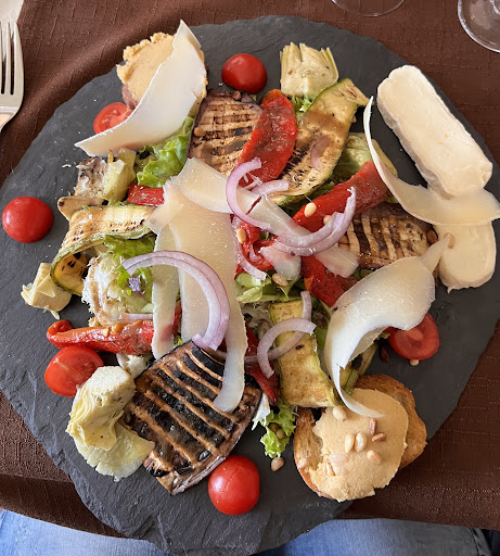 Read moreAttirato dall'impressionante 4.7 vado e probabilmente imboccando una serata no del locale becco una mezza sola. Due menĂč (solo terra, mezze porzioni, 1° e 2° nello stesso piatto) da 37 euro l'uno. Sei fette di salsiccia coppa e lonzino 2+2+2, 2 frittelle al formaggio riscaldate, 2 cannelloni con sugo lento , 3 pezzi di vitello con sugo lentissimo (deve essere una tipicitĂ ), 2 pezzi di formaggio buono con marmellata, dolce tipico al formaggio freddo di frigo (peccato). Mezzo litro di vino e una lasagna (buona) alla modica cifra di 96 euro. Nessuna preparazione degna di memoria a parte la tempistica, due tavoli occupati in tutto il ristorante 19.15-22.00. Ok era solo una persona, ok era lunedĂŹ ma a quella cifra, andare via con la fame, 4.7 di media anche no. Saremo...