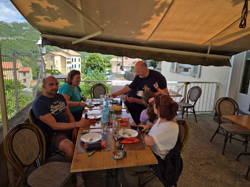 Read moreSur la route entre Bastia et Ajaccio, nous n'aurions pas pu tomber mieux ! Si nous avions séjourné dans le coin ce serait assurément devenu notre cantine ! Nous avons été adorablement accueillis et servis par Jean Pierre et sa femme Doumé à peine remis de la veille où ils s'étaient couché très tard à l'occasion d'une fête autours d'un veau à la broche ! On a mangé délicieusement autours de charcuterie maison, tomates du jardin, très bonne entrecôte et un fondant à la chataigne maison dont on est reparti avec la recette ! PS pour Doumé, on l'a refait nous même pendant votre séjour, il était presque aussi bien que le...