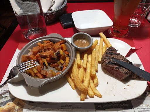 Read moreNous avons mangé à 3 + un bébé aujourd’hui dans le restaurant et j’ai été très déçue .. dans un premier temps, l’accueil a été agréable et on a de suite proposé une chaise haute, on a attendu un peu pour prendre la commande mais ensuite il a fallu attendre presque 1h pour avoir le plat.. inadmissible avec un bébé .. on est très très loin des 45min à table soit disant régle d’or.. j’ai attendu également 19min pour avoir une autre sauce .. il paraît que c’est pourtant illimité ? Mais enfin bonh si c’est pour manger les frites froides avec la sauce … D’autre part nous avons commandé « deux faux filets » et sans même faire attention la serveuse a dit « charolais ? » après qu’on ai prononcé « faux filet » et a donc profité de notre inattention à dire oui sans même savoir car nous n’avions plus la carte en main et nous occupions d’un bébé qui s’impatientait .. évidemment en fait elle nous a proposé la grosse pièce de 350g à 26€90 au lieu de notre plat de base.. et la surprise a l’addition de voir ce tarif là.. et en y réfléchissant j’ai remarqué que c’était la politique .. des que l’ont dit « un tartare » ou « un burger » ou nous propose direct « double ? » pour nous pousser à la consommation sans même qu’on fasse attention.. même pas une remise avec toute l’attente .. addition déposée comme ça à la va vite sur la table et on s’en va.. on ne reviendra pas...