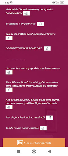 CĂŽtĂ© cuisine, un vrai rĂ©gal : des plats gĂ©nĂ©reux, bien prĂ©sentĂ©s et savoureux, prĂ©parĂ©s avec des produits de qualitĂ©. Le buffet dâentrĂ©es est variĂ© et trĂšs appĂ©tissant. Mention spĂ©ciale pour le plat principal, parfaitement cuit et assaisonnĂ©.