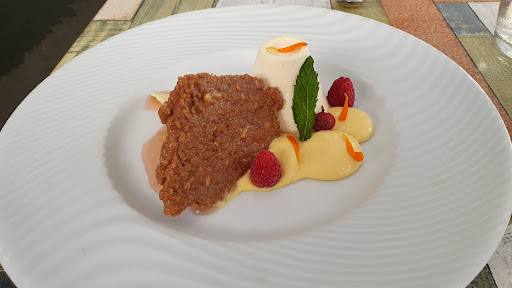 Exceptionally fine little restaurant - warm welcome and incredible food. This chef understands food and flavours. We both had terrine to start - served cooked with beautifully prepared and presented orange slices- inspired. A perfectly cooked steak and beautiful smoked monkfish tail followed by the dessert selection. Good wine , a lovely amuse bouché ( chick pea and pesto?) . The best meal we have had in France for a long time. Our 2 cats in the car outside enjoyed being checked on by the staff too. Much future success to you -...