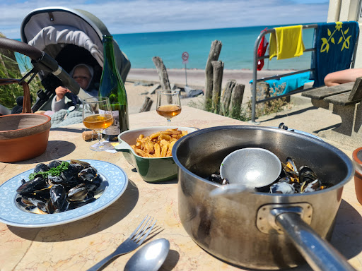 Read moreWhat an experience! We did not expect much from the restaurant and were very much surprised. In German I would say urig, meaning with a rustic charm. It is not more than a huge beach cabin with wooden tables and benches. The menu is printed on a piece of paper and you order at the bar. On an open fire they grill sausages and knuckles. I had mussels, very good, and my wife had galette. The oysters as a starter were also delicious - well salty. You cut your bread yourself. An Irishman plays the piano, the sun goes down and the beer gives you the perfect you the perfect feeling of calmness. Very cool atmosphere. I can recommend...