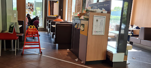 Read moreDe passage dans un Hypermarché bien connu, nous nous dirigeons vers ce restaurant qui se trouve dans une zone d'activités commerciales. Le décor sobre et chaleureux à l'intérieur est une bonne surprise. Malheureusement ce n'était qu'un mirage... Une fois assis, nous avons pu voir des déchets par terre un peu partout (voir photos). Et je n'ai pas pris la peine de prendre en photos tous les de déchets qui semblaient errer là depuis un certain temps. Mais surtout, la très mauvaise surprise fût l'attente extrêmement longue pour obtenir 2 simples menus Mcfirst. Près de 20 minutes pour enfin que deux employées nous amènent à notre table notre commande (nous étions seuls !!) alors que le restaurant était vide ! Les employées elles-mêmes nous ont amené nos plateaux en discutant entres elles sans un mot pour nous ni un regard et il a fallu que je leur lance un "Bonjour", ce qui a semblé les surprendre car coupant court à leur discussion, pour qu'elles nous renvoient poliment la même salutation. Enfin, après tant d'attente, nous avons là encore été très déçus de constater que les frites étaient tout simplement froides ! Ma femme s'est alors rendu en caisse pour le signaler et elle a attendu près de 10 minutes avant qu'on lui remette d'autres frites. Je précise qu'il y avait pas mal d'employés en cuisine, y compris derrière le comptoir et pourtant je n'arrive toujours pas à comprendre un tel manque d'organisation permettant au minima de laisser la salle propre (alors qu'elle était vide) et de servir ses clients selon des délais raisonnables qui plus est dans un "FAST"-food. Bref, tout est à revoir y compris la formation de certaines salariées à qui il serait bon d'expliquer qu'il n'est pas anormal de saluer sa clientèle. Heureusement, mon passage dans ce restaurant était exceptionnel et je sais par expérience qu'il ne représente pas TOUS les...
