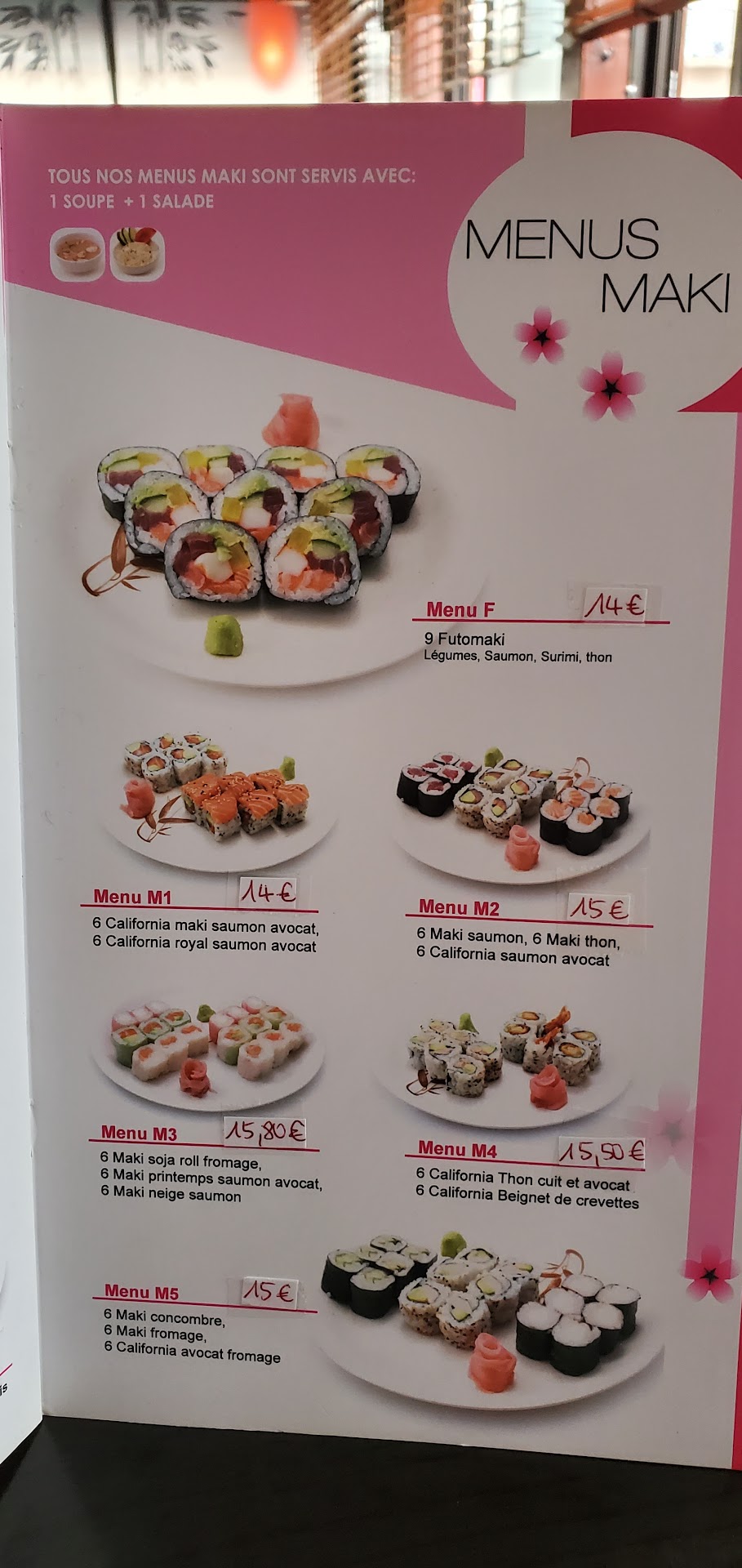 Menu O2 ( soupe, riz, chou, sashimi saumon, california saumon avocat) Maki...