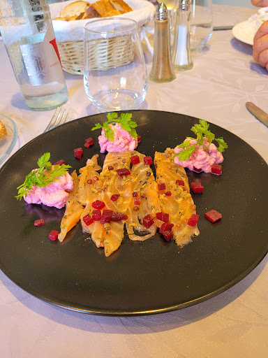La patronne peu aimable (c'est le moins qu'on puisse dire !) sert les plats avec sa doudoune (?) je n'avais encore jamais vu ça au restaurant, ne donne pas de carte pour les apéritifs, n'annonce pas la nature des entremets qu'elle sert.