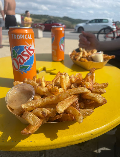 Read moreAlors, tu arrives à proximité avec l'envie d'une frite et déjà ça sent bon, c'est un très bon point, le temps est agréable, les tables un peu à l'abri du vent, autre bon point, l'équipe a l'air sympa, ils passent de la bonne musique, le service est rapide, on s'y sent bien. L'ardoise qui annonce l'utilisation de produits locaux/circuit court c'est tout ce qu'on aime alors on décide de manger ici et ce fût une excellente décision. Les frites sont savoureuses, les chipolatas et merguez consistantes et goûteuses, les sauces aussi et la petite glace de la ferme après la balade, parfaite. Les portions sont bonnes, les prix raisonnables. La carte est limitée certes mais les produits bien choisis... Après tout c'est une baraque à frites, mais tu y manges mieux que dans certains restos. Allez donc à...