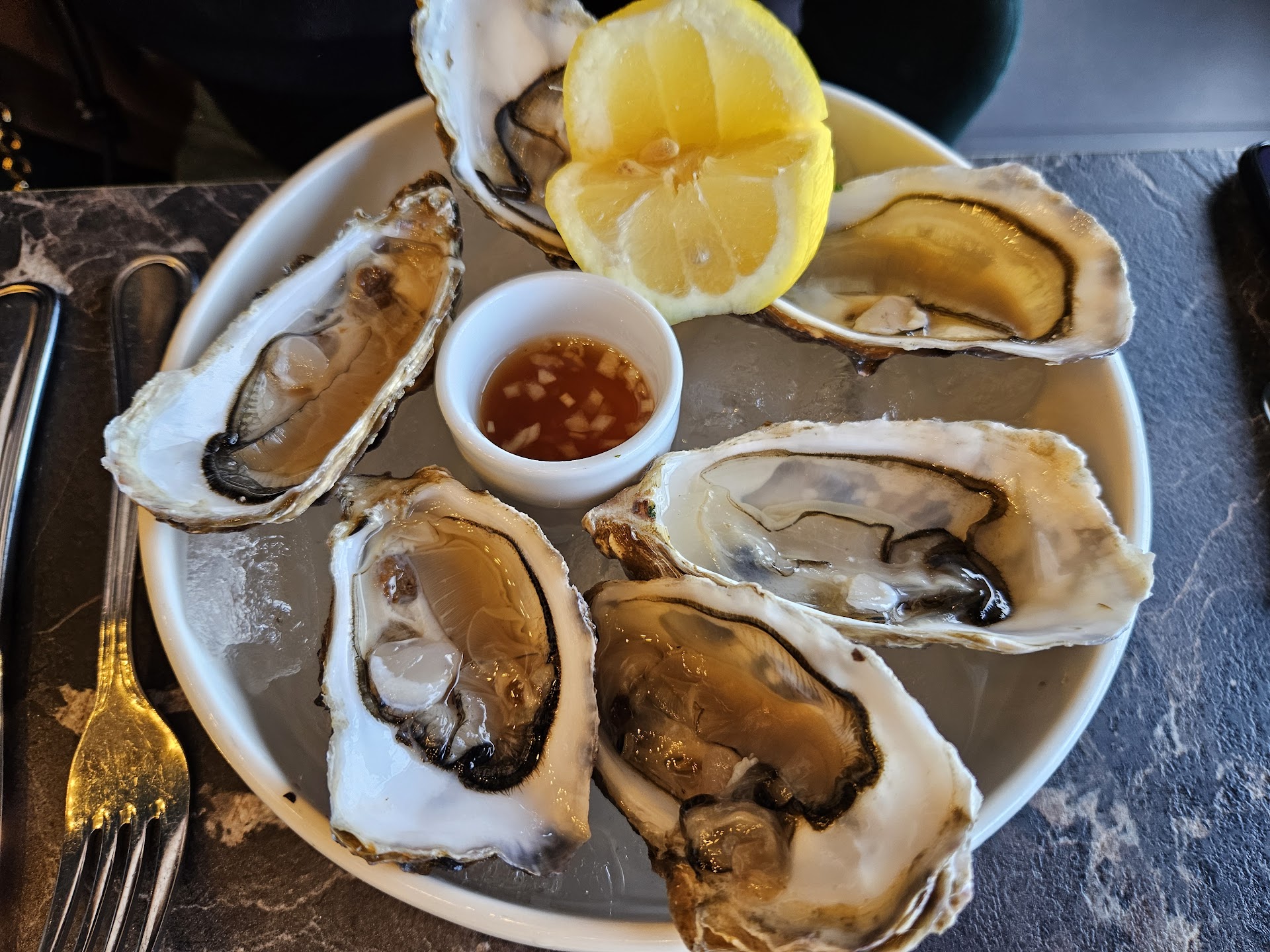 Our 1st dinner in Dieppe (13jun2023) was very delicious: the mojitos (1 classic+1 virgin) prepared by Marcel (?) were absolutely well balanced on all the ingredients. They were 1 of the best which I have tasted. The dishes were very very good (fish soup, gambas risotto, turbot & veggies in morel sauce). We were eating on their terrace with magnificent sea & sunset views. Because of the great experience, we went back on 14jun having the same table. The mojitos were still top notch prepared by Marcel. The fish (the dish of that day) for my husband was very good however my poke salad bowl was very disappointing. On the menu, it was supposed to have a curry sauce. When the salad arrived, there was no sauce. I told the waiter (Marcel) & he went back to the kitchen & brought me back the sauce. I poured in the sauce & ate. Definitely not curry sauce but lots of olive oil mixed with mustard & a bit of vinegar. I was too hungry & angry to ask for a change. Maybe the chef was not the same as the night before or coz there was a table of 12+ clients on 14jun? I was very frustrated & sad as this bad experience wiped out the good...
