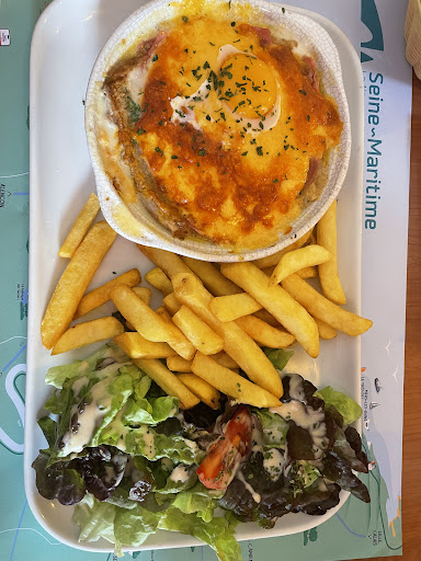 Read moreWij hebben het niet getroffen bij dit restaurant. Buiten stond een bord met daarop aangegeven dat een Plat de Jour te koop was. Echter bij het vragen ernaar werden we afgeblaft dat de keuken dicht was. Maar een Croque-Monsieur (€ 6,--) kon nog net. Na een half uur wachten kregen we het bestelde . 1 tosti ging nog maar nummer 2 was niet te eten. Zie de foto. Kortom, De bediening was slecht (een chagrijnige dame ) en het eten niet goed. Mijden deze locatie. Nous n'avons pas eu de chance dans ce restaurant. Dehors, il y avait une pancarte indiquant qu'un Plat de Jour était à vendre. Cependant, lorsque nous avons demandé, on nous a répondu que la cuisine était fermée. Mais un Croque-Monsieur (6 €) était très bien. Après avoir attendu une demi-heure, nous avons reçu ce que nous avions commandé. 1 sandwich était toujours bon, mais le numéro 2 n'était pas comestible. Regarder la photo. Bref, le service était mauvais (une dame grincheuse) et la nourriture n'était pas bonne. Évitez...