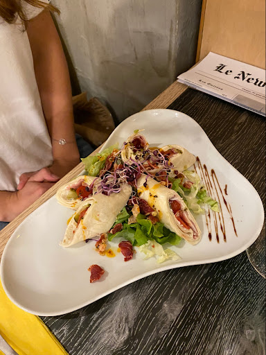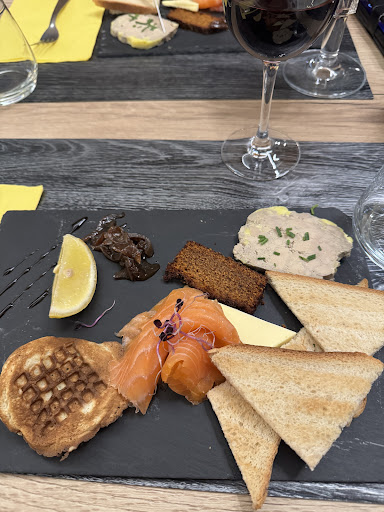 Read moreWe spontaneously looked for a restaurant for the evening for a meal and a glass of wine. We went here because of the good reviews. The reception was very nice and we were able to choose a table. Unfortunately, the menu was only available in French on a large chalkboard. But Google helped us well. The service also tried to tell us two more things with Google, which was really nice. We stuck with two glasses of white wine and fish and chips as the rest of the dishes didn't appeal to us. There was a free amuse bouche, which was also nice. The food itself arrived relatively quickly, the evening could have been so nice. Unfortunately, the dishes were barely edible. The fish „crust“ was soft, greasy and made probably with turmeric. You could eat the fish fillet, the quality was okay. The fries were so greasy and tasted like an old deep fryer. We left half of it, paid quickly and then went to eat somewhere else. Unfortunately, the price of 30 euros per person was overpriced in our opinion. It was simply not well prepared in terms of craftsmanship and taste. I'm sorry to have to say it so clearly, but you simply can't serve...