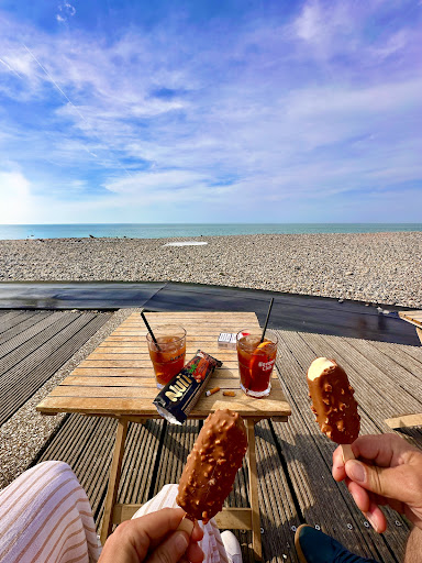 We zijn hier meerdere keren geweest voor een goede kop koffie, espresso of een glas wijn met uitzicht op zee. Je zit hier heerlijk: er is een speeltuintje vlak bij waar de kinderen zich vermaken en natuurlijk het kiezelstrand. En elke ouder weet: als de kinderen spelen, heb je zelf ook écht vakantie. Ze hebben een soort bankjes met kussens en zeezicht 👌🏻.