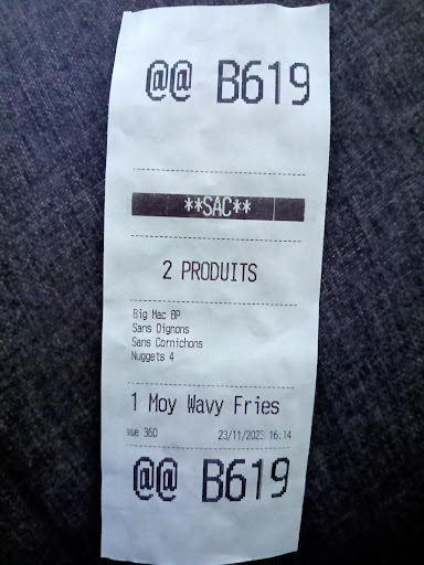 En ce qui concerne le menu, j'ai été agréablement surpris par le choix varié et la qualité des options proposées. Que vous soyez fan de burgers, de poulet, de poisson ou même de salades, il y en a pour tous les goûts. J'ai opté pour leur célèbre Big Mac et je n'ai pas été déçu. Le burger était parfaitement préparé, avec des ingrédients frais et une sauce savoureuse qui lui donnait une saveur unique. Les frites qui l'accompagnaient étaient croustillantes à souhait, et j'ai également apprécié leur large sélection de boissons rafraîchissantes.