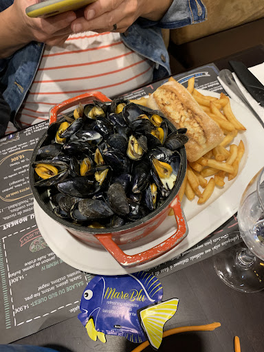We had moules roquefort each accompanied by a 75cl pitcher of rose (€18). The sauce was reach and creamie and yet not overwhelming with roquefort, which was good. We then had a crepé with Nutella and a chocolate viennois with plenty of cream, whilst I finished with an espresso. All very good. The service was excellent.