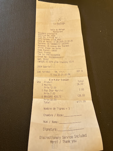 Read moreNous nous sommes rendu hier soir à la table du refuge dans une salle magnifique, déco magnifique moderne et apaisante, tout est bien pensé. Les prix des menus sont corrects. En revanche, j'ai choisi le burger montagnard et malheureusement le pain du burger rôti à l'intérieur était cramé (noire), ce qui a rendu le burger très sec et une amertume à tout le burger, le fromage fondu dessus à la raclette n'avait absolument pas le goût de raclette. Une petite salade verte à côté du burger aurait apporter de la fraîcheur à une assiette un peu vide d'aspect. J'ai précisé à la serveuse en montrant que le pain du burger était cramé et elle a répondu "je sais" mais je pense qu'elle n'a pas bien compris car elle parlait peu le français. Le plat de volaille farci champignons très bon! Les cocktails sont bons! Cet avis a pour but d'améliorer certains aspects car il y a un vrai potentiel à développer, l'établissement étant récent....