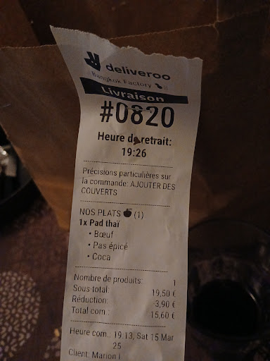 question nourriture : j avais déjà commandé 1 fois par le passé chez eux et je n’étais pas convaincue par les entrées et les plats, hormis les desserts mais je voulais donner une autre chance. Au delà du fait que rien n’est thaïlandais ( hormis le nom ) la nourriture est sèche, grasse, viande mal cuite, plats fades sans goût, sans sauce et alors vu le prix enormissime comparée à la qualité, c’est littéralement un abus.