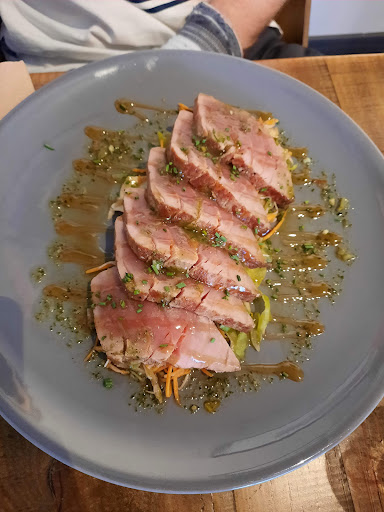 De passage à Dijon je me suis arrêté à ce petit restaurant éloigné du centre au calme, Prise de contacte sympathique la serveuse gentille etc Je commande un mojito une eau . Je commence par une marherita en entrée car je voie sur la carte fior di latte je le dis super enfin de la vraie mozza en plat principal je commande un rouler de cochon 🐷 bref je demande à la serveuse si je peux brancher ma trottinette le temps du repas . C est un non catégorique du patron....bravo La pizza arrive et je comprends de suite que je suis tombé chez un comique....mozza bas de gamme en aucun cas du fior di latte (je contacterzi d ailleurs la ddt)etc bref j annulé le reste et je suis reparti comme je suis venu évidemment le gentil cuisinier patron est resté planté avec ses potes à table aucun sens du commerce...ça lui coûtait quoi de me laisser charger ma petite trottinette...