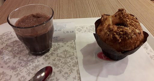 les 17 et 18/12/18 une première visite correcte....sans plus. On sent bien que les serveurs n'ont pas envie.... Mais le 18 le pompon ! Machine a chocolat chaud en panne...ok ca arrive, mai son présente la chose en s'excusant, on propose un thé à la place....heuuu c'est pas la même chose.... Y a une boutique à 10 mètre qui en propose, je serai le vendeur j'irai en commander un la bas pour satisfaire mon client. bref...Je commande ma pâtisserie du matin, jetée dans le plateaux négligemment... Ensuite le vendeur chiffonne le ticket de caisse direct, heu je le voulais..... Et le plus fort.....il ne me donne pas ma monnaie ! J'attends, rien ne viens ! Je dois réclamer mes sous !c'est fort ! Il me répond, je vous l'ai pas donné ????? Pas de chocolat, pas d'excuse, on jette mon gateau et on me rends pas ma monnaie... Bah les 3 autres jours de présence à la toison, j'ai pris mes pti dej juste en face ! mais plus jamais la bas. Au surplus, les machines de boissons glacées sont orientées directement sur l'espace consommation, bruyantes et font du vent froids ! tout pour séduire...... Le commerce est un art difficile dont vous ne semblez pas...