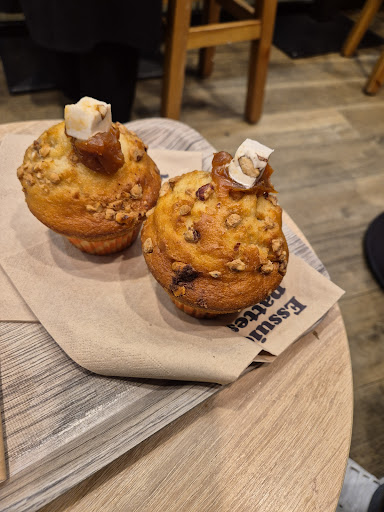 Malgré une surface et une terrasse sous centre commercial de petite taille, nous avons beaucoup apprécié la convivialité qui y règne. La prise de commande est effectuée avec plaisir et sans contrainte. Le personnel est agréable, souriant. Le lieu est calme malgré le fait qu'il soit situé dans un centre commercial, après les portes pour se rendre au tram ou en venir. Les présentoirs à pâtisseries pourraient être mieux garnis. Il y a des trous et pas d’étiquette de prix pour celui qui nous faisait de l’œil (le Génér’ours). Nous avons apprécié l’offre des cinq muffins plus un gratuit pour une vingtaine d’euros si mes souvenirs sont bons. La banquette à l’intérieur est confortable mais pourquoi ne pas rajouter un tabouret pour que la troisième personne s’assoit en face des deux autres? Pour en revenir au muffin Générou'rs, il était très bon et fourré au caramel à l’intérieur! Je ne m’y attendais pas. J’ai trouvé cette recette original avec son petit cube de nougat...