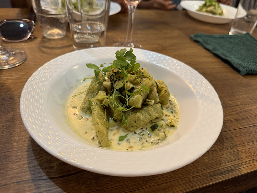 Read moreA nice, tasty, and inventive vegan dinner, for 2 persons. We had delicious starters, melon soup and a terrine of lentils. This was followed by a levante style aubergini and falafel and a Zucchini composition with different textures and tastes. We finished the dinner with a creamy rasberry dessert. The only minor disappointment to this dinner were the falafel that were a little dry.