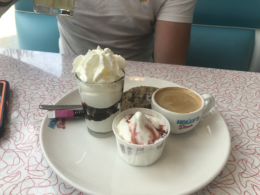 Read moreCe Hollyâs Diner Ă lâambiance usa vintage est agrĂ©able de par son dĂ©cor. Lâaccueil et le service sont sympathiques. En revanche, niveau plats, ce nâest guĂšre fou-fou⊠une salade cesar Ă la prĂ©sentation toute relative (mĂȘme celles que je fais Ă la maison sont beaucoup mieux prĂ©sentĂ©es), un pain burger qui se « dĂ©piaute » (mauvaise qualitĂ© du pain, il en existe pourtant de bien meilleur et de bien plus beau), des frites plus que moyennes (bien en dessous de certains Fast Food, câest dire !), et de la chantilly pas trĂšs trĂšs fraĂźche (ça doit ĂȘtre au frigo les bombes de chantilly, et non sur un Ă©talage Ă peine rĂ©frigĂ©rĂ© en compagnie des sandwichs et desserts prĂ©sentĂ©s en vitrine)⊠en somme, on mange bien mieux chez un de leur concurrent au mĂȘme concept (entre autresâŠ). De plus, la propretĂ© laisse quelconque peu Ă dĂ©sirer. Avec un rythme effrĂ©nĂ©, le nettoyage est en partie bĂąclĂ© (ce diner nâouvre pas seulement aux heures des restaurants, il fait aussi office de café⊠donc ouvert toute la journĂ©e). AprĂšs le dĂ©part de chaque client (on sent quâil ne faut pas sâĂ©terniser, on vient nous dĂ©barrasser la table et nous demander la suite rapidement), le personnel nettoie la table en express et remet des nouveaux couverts illico presto (clients suivaaants !!!). En revanche, les banquettes (avec miettes, cheveux et jâen passe) ne sont pas nettoyĂ©es⊠jâai dĂ» le faire moi-mĂȘme en arrivant. De mĂȘme que les couverts et verres ne sont pas toujours tout Ă fait nets⊠le pauvre personnel doit enchaĂźner⊠mais pour moi la propretĂ© doit faire aussi parti des prioritĂ©s, surtout dans la...