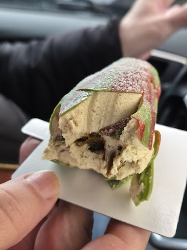 Incroyable ! Mon conjoint à du aller à Perrigny-lès-Dijon et il s'est arrêté un peu par hasard dans cette boulangerie/patisserie. Il m'a aussitôt appelé me disant à quel point il était satisfait ! Il m'a ramené un éclair à la pistache. Détestant les pâtisseries, surtout celle à base de pâte à choux, j'étais un peu déçue. Mais en déballant l'éclair, j'ai été agréablement surprise et tout de suite conquise, et cela s'est confirmé à la dégustation ! L'éclair était magnifique, la pâte à choux juste dorée comme il faut et si moelleuse, le fondant au-dessus, d'un vert délicat et parsemé généreusement de morceaux de pistaches. Et la générosité est surtout à l'intérieur avec une bonne dose de crème pâtissière onctueuse et parfaitement parfumée ! Un sans-faute ! Vous avez réussi à me faire aimer ce que je déteste par dessus tout. Chapeau bas ! Par la suite, j'ai pu jeter un coup d'œil à votre établissement sur Google Maps et je me suis engouffrée dans les photos mises en ligne et alors là... (petite mention pour cette devanture colorée et moderne qui donne le ton)... Vos viennoiseries et pains sont impeccables, le snacking à l'air très varié et généreux et surtout vos tartes, vos trompe-l'œil, vos pâtisseries... Quelle beauté, quelle modernité, quelle qualité, quelles couleurs, quelle générosité ! Le rapport qualité-prix est là, c'est indéniable. Un grand bravo ! Si vous étiez à Dijon, je viendrais toutes les semaines ! Excellente...
