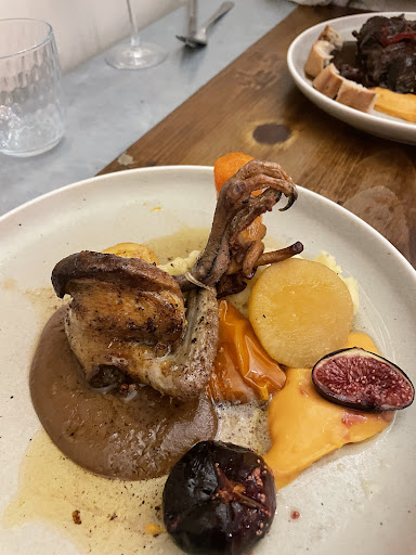 For our dinners, I ordered the pigeon because I was hoping it was going to compare to the amazing quail I had this summer. I don’t know who had approved serving a pigeon with the foot/talon still attached, but it was a turn off to the meal. Myself and the rest of the table had to try to look away from our dishes to eat the dinner. Benefit of the doubt that maybe pigeon is normally served this way? I looked up other pigeon dishes served, and most were not. It was unappetizing. The food was decent - the vegetables were amazing, but for a Michelin star, I was disappointed.