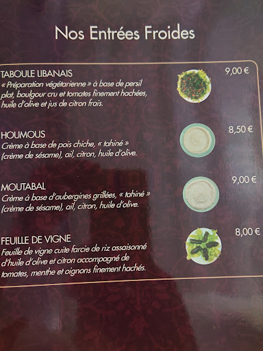 Read moreUne pluie d’étoiles pour ce restaurant! Ce fut un coup de cœur, lorsque ma fille et moi l’avons découvert à sa création, il y a une dizaine d’années. Et ça ne s’est jamais démenti ! Depuis nous revenons régulièrement avec joie! Je le recommande sans hésiter autour de moi. Nous aimons l’authenticité, la qualité des plats faits maisons, la cuisine simple et savoureuse, faite avec le cœur, l’accueil toujours adorable et raffiné. Nous avons fait plusieurs fois le tour de la carte, avons nos plats favoris. Nous avons vu le lieu s’embellir. Avec le temps, on s’y sent un peu comme chez nous. Parfois je viens juste prendre un plat à emporter, j’ai alors un faible pour les chawarma. MERCI et BRAVO à vous, chère Madame, cher Monsieur, car c’est un sacré métier lorsqu’on veut bien le faire! Bref, si vous ne connaissez pas, allez y et vous verrez! A noter : choix végétarien varié, pas...
