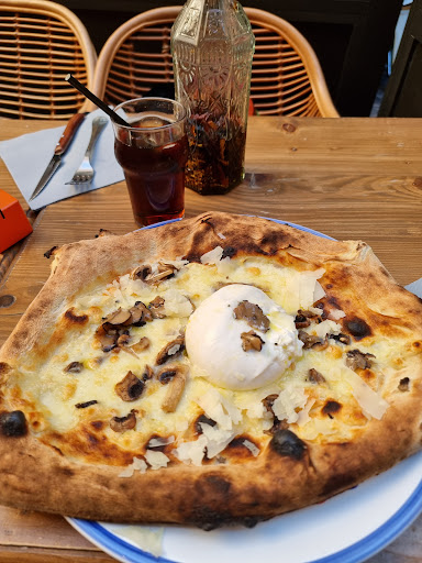 Mixed opinions about this place. The cocktail and the pizza were nice but there are so many bad details that made our experience wrong that we couldn't even enjoy the food that much. First, the wait time for horribly long. A pizza takes 5 mins to prepare and cook. We ordered pizza for our whole table, so 9 pizzas. We waited for 50 minutes in the patio enduring the heat of the 1PM sun. No fan, no air, no comfortable seating and no waiters to update and check on us. It really felt endless. Once the food arrived we were so hungry that we rushed our pizzas and did not even properly enjoyed our food. What I can say on the pizza is that 1. The mozzarella is not actual mozzarella. And 2. The pizza crust is way too large and undercooked. I found all these weak points quite disappointing for this place because we can see that there is a huge potential in making this...