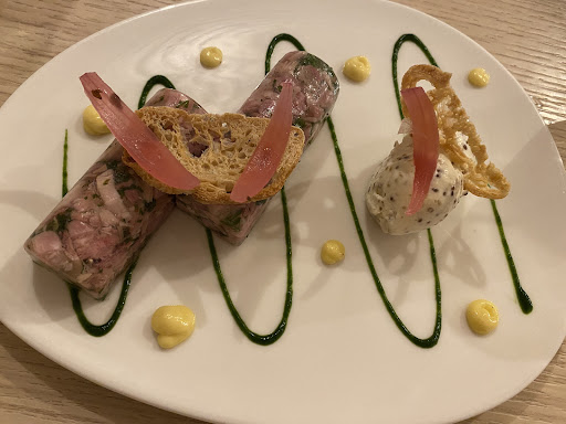 Read moreAs always, rating is relative to cost. My wife and I both had truly exceptional lunches here, for a total of roughly 100E. As a somewhat incomplete description, I had a rabbiit-salad micro-sandwich entree, rumsteak on sesonal vegies plat, a cheese plate, and a glass of an excellent grenache wine from the south. My wife had a de-constructed egg salad on white asparagus entree, trout with potatoes plat, and a rhubarb tart with rhubarb mousse dessert. Every dish really delicious, with all except the cheese and dessert using the local favorite condiment, mustard, as some part of the taste. Wonderful and very highly...