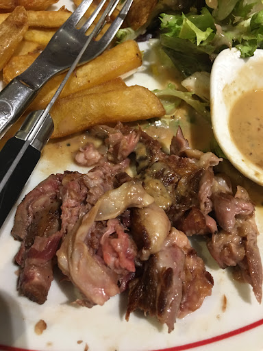L'ambiance est attirante, le style chaleureux, avec la réouverture des terrasses, je ne peux pas m'empêcher de vouloir de nouveau revivre à la francaise. L'accueil est chaleureux, et c'est bien loin d'imaginer le désastre qui allait arriver que je m'asseois. Tout d'abord, j'ai cru que le chiffre en face des viandes était le poids et non le prix... Une salade de chèvre chaud "froide", avec une salade digne des meilleures industries me fait comprendre que ce n'est pas ici que je vais me régaler. Mais le plat vient clouer le spectacle. Une entrecôte saignante ressemblant à une semelle, des frites congelées une fois sur deux, une sauce qui à demande comme temps de préparation la durée du micro ondes; tout cela pour la modique somme de 19 euros. C'est épuisé que je finis ma viande, avec l'impression d'avoir avale un chewing gum de semblant de viande, et l'envie de prendre un dessert me semble de plus en plus étrangere. Mais l'erreur est humaine, et c'est sur une demi gauffre brûlée et sèche que le désastre se termine enfin. Au final, 26 euros pour des portions faibles et de mauvaise qualite. Vous repartez avec les artères bouchees, un degout sur plusieurs jours et les poches vides. En conclusion, le seul point positif est la mémoire du serveur au moment de payer. J'espere que ce commentaire vous passera l'idée de gacher votre déjeuner/dîner et le choix des restaurants autour vous permet d'éviter le pire. C'est d'un "À bientôt" que je suis parti, ressemblant...
