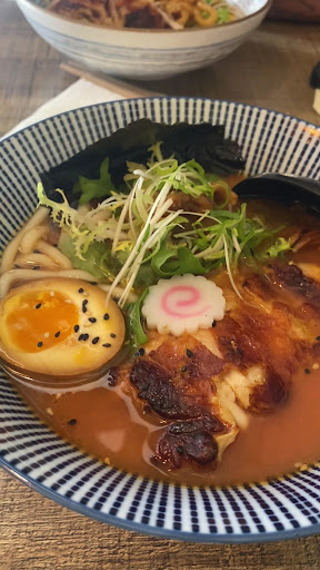 We were excited to enjoy some Ramen after a cold weekend and this spot looked like the right place to enjoy it. We started with takoyaki, one of my favorite Japanese snacks. When it was served with shredded lettuce instead of bonito & seaweed, I knew something was off. They were also deep fried. Next, our ramen arrived. It looked beautiful, aside from the lettuce on top, which has no place in ramen. We both ordered miso broth, because we wanted added richness of the miso paste. The broth had no flavor at all. It tasted like miso & water. No tare or umami. If there was soy sauce on the table, I would have poured it in to try and save the meal. I left mine 80% unfinished. It was so terrible. I only ate the egg, which was the only flavorful part of the bowl. Even the chasiu pork was bland. At €16, this was extremely disappointing. Lastly, the gyoza arrived. This was the best part of the meal, but sadly could not make up for such...