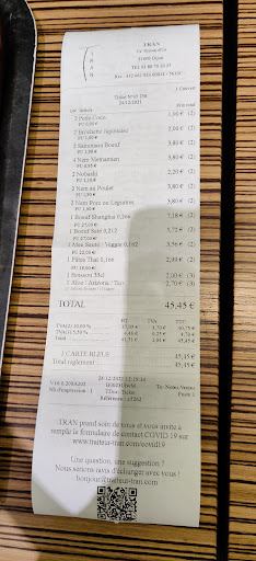 Read moreJ'ai été avec mon conjoint chez TRAN (au rez-de-chaussée ) C'est un traiteur de qualité qui propose des produits qui ont du goût. Le personnel est a l'écoute, accueillant et souriant. Concernant le choix des produits, la note grimpe très vite. Les aliments sont servis dans des barquettes en plastique et réchauffer au micro onde et nous les ont apporté à notre table. J'ai particulièrement apprécié la sauce nem ( ou nuoc mam). La sauce est bien réussi. Le plateau est servie avec des couverts (fourchette + couteau) + assiette. J'aurai aimé qu'on me propose les baguettes mais j'ai du le demander. Dans l'ensemble nous...