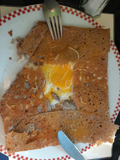 Great little family creperie in the Historic District of the wonderful town of Dinan. This is not the biggest or fanciest crepery in Dinan, which is a town literally FULL of creperies. But that is the beauty of it - it is a sweet little family owned shop where you can duck in from the ancient cobble stone streets and sit down, relax, have a great crepe meal (the local "meal-type" crepes are actually called Gallets) and enjoy some friendly conversation with the family that owns and operates it. They were very patient with my halting high school french, and gave us some great information about not only the meal, but the town itself. They introduced us to the local "apple brandy" liquor, called Calvados, which is quite strong so be careful if you try it! If you want flashy and expensive, go down the street; if you want to feel like you are part of a family dinner where you can relax and enjoy a great meal, then don't miss this little gem!!!! Thank you again to the owners Stephanie...