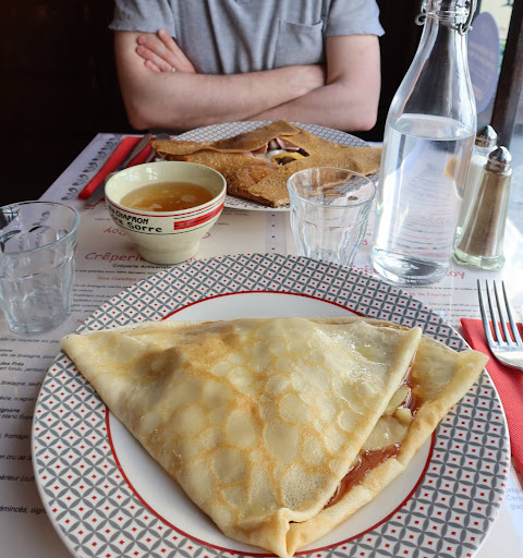 Read moreStopped in for dinner on our first night in Dinan, and were so glad we did! We had our first galette and crepe of our trip there and we were not disappointed. The food was delicious, and it is run by a wonderful couple who took over the business 4 months go and it's clear they love what they do. We had the opportunity to meet their sweet daughter as well, and saw them again two days later in town, and it was like greeting old friends. They were so friendly and welcoming (and patient with our French!). Dessert was amazing and we had the crepe with chocolate, and the one with warm apples and caramel - la nourriture...
