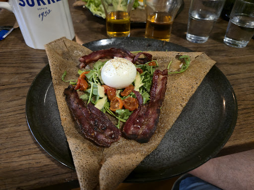 Read moreNous avions réservé pour un groupe de cycliste de 12 personnes le mercredi 12 juin. A notre arrivée, les tables ne sont pas prêtes, petit détail, mais nous étions seul à dîner. deux commandes de plateaux fromage/charcuterie à 17€ pièce 2/3 tranches de chorizo coupés au micron ! 2 tranches d'andouille et une petite tranche de jambon blanc accompagné de quelques tranches de fromage (toujours très fines) un peu de beurre et (un peu) de pain, mais pas assez pour deux, rupture de pain.....y'en a plus ! pour le reste du groupe galettes apparemment correctes. en ce qui concerne les toilettes.....la porte ne ferme pas ! pas de robinet au lavabo ! bref une véritable...