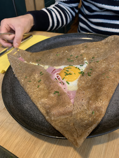 Repas le lundi 5 août 2024 a midi Le restaurant est isolé dans une petite rue a proximité de la rue de l'apport et de ces fameuses maisons. Extérieurement ça paie pas de mine avec sa petite carte sur une ardoise devant la ruelle ou sont disposées des tables façon salle des fêtes. Mais l'accueil, la qualité du repas est simplement parfait pour nous. On était 5 on a eu la chance d'avoir des moules avec leur excellente pommes sautées maison et deux galettes bretonnes ( complètes et vegan), les crêpes en dessert étaient salées un peu trop pour des non bretons, mais excellentes pour un breton. Merci encore pour votre accueil et votre sourire malgré la chaleur et un nombre de couverts important pour une...