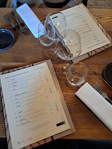 Our group of 7 left with a feeling of disappointment overall. Initial service was charming and informative, though level of service as evening progressed deteriorated. Some courses were well executed, though non of us liked the luke warm low temperature cooked fish. Most disappointing was the duck. It was overcooked and dry. The accompanying sauce was dried onto the plate. We did mention it to the waiting staff. We arrived at 7pm and left at 9.40pm, without waiting for a coffee. Very slow service. We suspected too few staff. Restaurant itself was lovely, but, sadly, we are not...