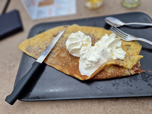 Read moreHorrible a fuir mais bravo à la cuisinière qui est seule à tout faire. Premier accueil du jeune homme très peu chaleureux, limite on l’embête à lui demander une table!!! Il nous trouve une place miracle à l’extérieur très jolie vu ouf cela sauf le reste!! Des chaises bien trop imposantes pour le si peu de place dehors, on es compressés les uns aux autres au point de sauter le muret pour pouvoir aller aux wu, qui au secours la propreté oh mon dieu la poubelle dégorge de papier, le sol et la cuvette n’en parlons pas et. Quand vous le dite la jeune femme vous dit ah ben si elle le sont et puis on y peut rien on les a faite ce matin et vider une poubelle ça prend deux secondes enfin bref!!! De suite la serveuse qui doit être la patronne nous montre un stress évident trop de monde comment on va gérer, nous précipite aucuns réels échange, nous commandons un hamburger à point le steak dedans était saignant, une salade demande et on a bien insister sans aucunes sauces celle ci était en dessous pour un retour de plat environ. 15 min d’attente. L’escalope à la normande flambée euh ben euh pas de flambage…. Mon fils demande un verre il a du courrier après un serveur qui en a eu rien à faire mais absolument rien à faire d’un enfant qui commande une deuxième verre. Quand à moi mon coca a été renversé par la serveuse qui apporte le plat aucunes excuses de sa part je me retrouve d’une trempée de coca sympas les fringues et de plus ne m’en a même pas rapporté un autre abuse il est où le côté commercial et en plus ce n’est pas moi qui l’est renversée quand même!!!! Suite à cela pas de dessert oh non on a été ailleurs!!! Au moment de l’adoption car oui il faut être honnête et avoir envie de payer, tous le monde vous regarde en chien de faillence et personnes ne veut vous encaisser sauf au moment on je dit à une amie une fois mais sûrement pas deux et qu’on allait partir sans payer puisque personnes ne voulais faire l’encaissement. La jeune derrière le bar nous demande si cela a été ont lui explique tout ce qui s’est déroulé la seule chose qu’elle a dit à ben c’est pas notre faute mais c’est celle de qui alors non mais sérieux!!!!! Ou va ton??? Donc à fuir ou peut être à l’hiver. Quand ils serons moins stressés et débordés!! Trop cher aussi par rapport à la qualité des plats et l’accueil on auraient su on seraient restés sur notre premier choix et on es venus chez eux pour une gaufre que voulais mon fils et que nous avons finalement...