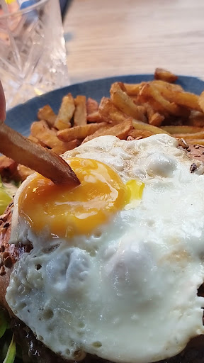 Then the Food arrived and my salad paysanne had The potato and ham burnt nearly to black. Salad had so much dressing it was like an oil spill. Left 70% of it. The burger my partner had was very average, Luke warm and the " frite" were inedible. Literally left it.