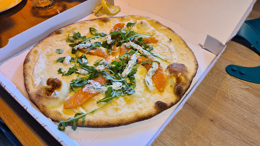 Read moreAyant pris à emporter je ne noterai que la nourriture. La salle avait l'air sympa et calme, le personnel agréable. Je ne met généralement pas d'avis négatif mais cette pizza à ce prix c'est une honte. Il y avait 3 bouts de saumon qui se battaient en duel, la pâte n'a pas levée et était caoutchouteuse, rien a voir avec les photos que l'ont pouvait voir dans les autres avis. Je n'avais jamais mangé une pizza aussi fade dans un lieu qui se dit pizzeria et qui pratique se genre de tarif haut de gamme. Pour une pizza à 10€ dans un foodtruck je ne dirai pas la même chose. Heureusement que les moules frites étaient très bonnes, je n'avais encore jamais vu mes enfants se battre pour ne pas avoir de pizza ... Étant donné les autres photos et avis je pense que c'était un raté mais dans ce cas là il aurait été possible de prévenir et proposer d'en...