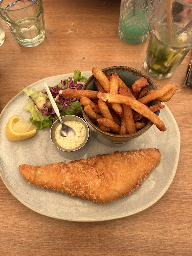 Read moreRepas en couple lors de nos vacances. Le cadre est très jolie. La décoration du restaurant également. Nous avions réservé et nous sommes arrivés à l’heure donc nickel. Petit bémol sur le service. Il y avait une serveuse très compétente mais qui avait l’air un peu dépassé car son collègue par contre était un peu plus long. Nous avons dû demander à deux fois pour qu’on prenne notre commande d’apéro alors que d’autres tables arrivées après nous avaient déjà passé commande… Une fois la commande enfin passée tout s’est enchaîné assez rapidement et s’était très bien. On vous change le cendrier des qu’il est sale pour le remplacer par un propre. Pour ce qui est du repas : fish and chips très bon, frites maison délicieuses et la sauce tartare idem. Axoa de veau validée par mon conjoint ainsi que les tapas à l’apéro. Rien à re dire sur la cuisine. Bémol sur le service car vraiment il n’y a pas beaucoup de tables donc je pense que mieux organisé ça...