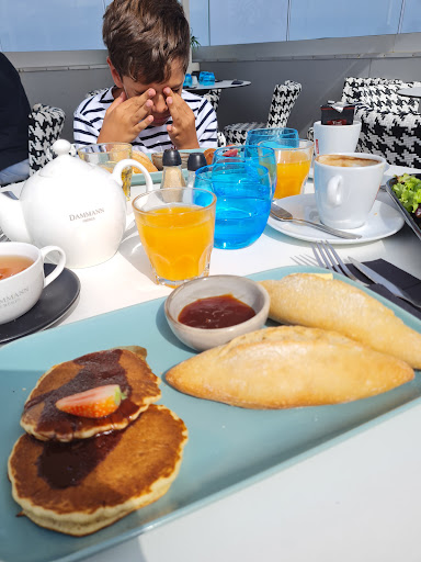 Wir kamen relativ zeitig, es war noch nicht viel los. Wir bekamen einen Platz zugewiesen. Eigentlich ein schöner Platz mit guter Aussicht. Im Nachhinein stellte ich aber fest, er war direkt neben dem Servicetisch. Daher wurde ständig hinter uns rumhantiert. Das war nicht angenehm. Ich habe das Anfangs nicht näher bewertet, aber im Zusammenhang mit dem Service, dazu gleich mehr, hatte ich das Gefühl, es war Absicht. Denn es waren noch genügend andere Tische frei und nicht reserviert. Zum Service: ja, der Service ist nett, aufmerksam und schnell. Aber trotzdem bin ich in Frankreich einen besseren, freundlicheren und entspannteren Service gewöhnt. Wir wollten erst einen Aperitif genießen und dabei in aller Ruhe die Speisekarte anschauen. In aller Ruhe, wie man das in Frankreich gewohnt ist. Hier hatte ich das Gefühl, wir müssen schnell abgefertigt werden. Der Kellner kam ca 10 Sekunden nachdem wir Platz genommen hatten und wollte die Bestellung aufnehmen. Wir baten um etwas Zeit. Das taten wir bestimmt 4 mal, da er in sehr kurzen Abständen wieder kam. Es nervte. Nach bestelltem Aperitif und Tapas wollte er sofort die weiteren Speisen aufnehmen. Unsere Tapas kamen vor den Getränken/Aperitif's. Das geht gar nicht. Das ging dann so weiter. Nur ein Kellner war sehr entspannt. Er brachte zwischendurch weitere bestellte Getränke. In aller Ruhe, mit einem Lächeln. Der Rest war im Laufschritt unterwegs und verbreitete eine unangenehme, hektische Atmosphäre. Sehr schade, denn die Speisen waren sehr gut. Wir hatten als Tapas geräucherten Schwertfisch und Sardinen, sehr gut. Als Hauptgang den Fisch des Tages mit raffinierten Beilagen und das Geflügelbein, ebenfalls mit einfallsreichen Beilagen. Mein Kompliment an die Küche, sehr zu empfehlen. Also liebes Serviceteam. Bitte etwas mehr lächeln und weniger Hektik, dann fühlt sich der Gast auch wie Gott in Frankreich. Ich bin mir auch keiner Schuld bewusst, ich war freundlich und sehr zurückhaltend. Ich glaub auch nicht, dass es daran lag, dass wir Deutsche sind. Aber es war schon zu beobachten, dass an einigen Tischen vom Service gelacht und gescherzt wurde und an anderen der Service gleich schlecht wie bei uns war. Bitte nehmt dies als Anregung es in Zukunft besser zu...