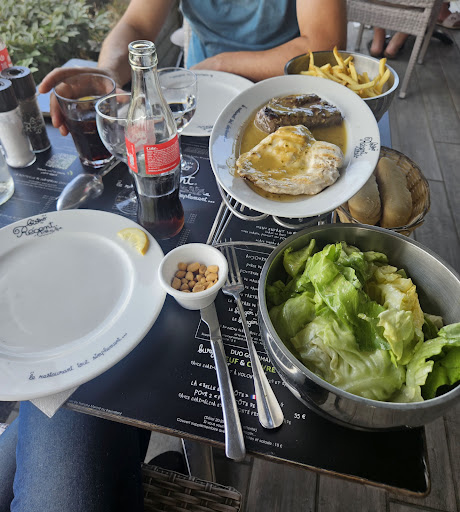 Read moreBonjour à tous, je vais faire une chose pour la première fois : laisser un commentaire négatif mais voilà il y a une première à tout 😂. Donc après la surprise de voir des assiettes empilées sur le côté, la serveuse me demande tout de suite ce que je veux, n'ayant pas encore vu la carte, je demande s'ils ont du vin bio. Non. Pas grave du coup, je commande un whisky coca. Autre surprise pour moi, au lieu d'un verre de whisky avec du coca dedans, j'ai un verre de whisky et une bouteille de coca. Bon tant pis pour moi je suis bonne pour payer un whisky et une bouteille que je ne finirai pas. Bien sûr je demande à emmener la bouteille. Surprise ce n'est pas possible. Après discussion où bien sûr je suis prise pour une imbécile ( oui madame c'est comme cela partout ce qui m'agace et évidemment grand classique renversement il m"est demander de lui parler gentiment. Pour info j'étais correct et juste precisé que une je n'avais jamais vu le coca être servi à part et deux que nul part il était dit pour la consigne. oui dès que tu objectes sans crier ni rien c'est déjà trop. J'adore ) Bref je peux si je débourse 1€ de consigne🤔. Non merci. Après avoir servi le poisson à moi même et à mon accompagnant du plat de service vers les assiettes sur le côté nous dégustons un plat très vite froid avec des frites surgelées et de la salade. Repas décevant et pratique pour le moins à laquelle je ne suis pas habituée. Peut-être que vous si mais du coup moi je n'y retournerai pas et déconseille. Chaqu'un peut se faire son idée mai mon opinion est celle-ci. J'attends autre chose d'un restaurant et franchement même abstraction de ce problème rien à partager de positif sur la qualité. A...