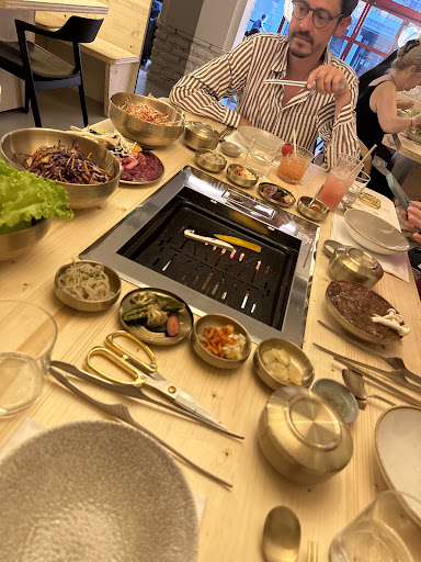 Read moreLe concept est très sympa mais je n’ai pas été convaincue. Ayant fait des barbecues coréens et en comparaison, ça n’a rien à voir. Que ce soit au niveau du goût, de la qualité de la viande et du prix. Déjà, je trouve ça plutôt cher pour la quantité de viande que nous avons. Certes il y a plusieurs accompagnements mais ce n’est pas ce qui rattrape la quantité. Concernant le kimchi, déception, il y avait un chou d’assaisonné et le reste non. Les baguettes sont plates, je n’ai pas trouvé que c’était pratique pour manger. Je trouve ça dommage qu’il n’y ai que des propositions de viandes (pas de poulet) et pas de poisson surtout que nous sommes en...